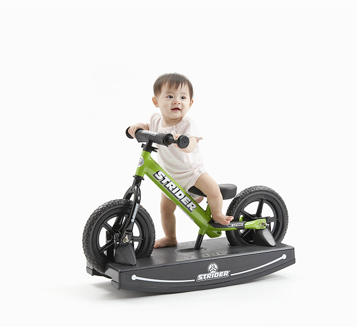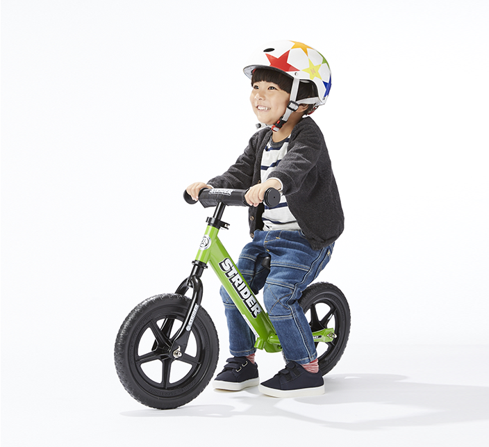 ストライダーは感覚で乗れる二輪車で、バランス感覚が養えるため、バランスバイクとも呼ばれております。バランス感覚が身についたら、補助輪なしの自転車にトライできるのも嬉しいですね。また現在は0歳から使えるロッキングタイプのSTRIDERも出ているので、0歳から使える二輪車としても人気です。